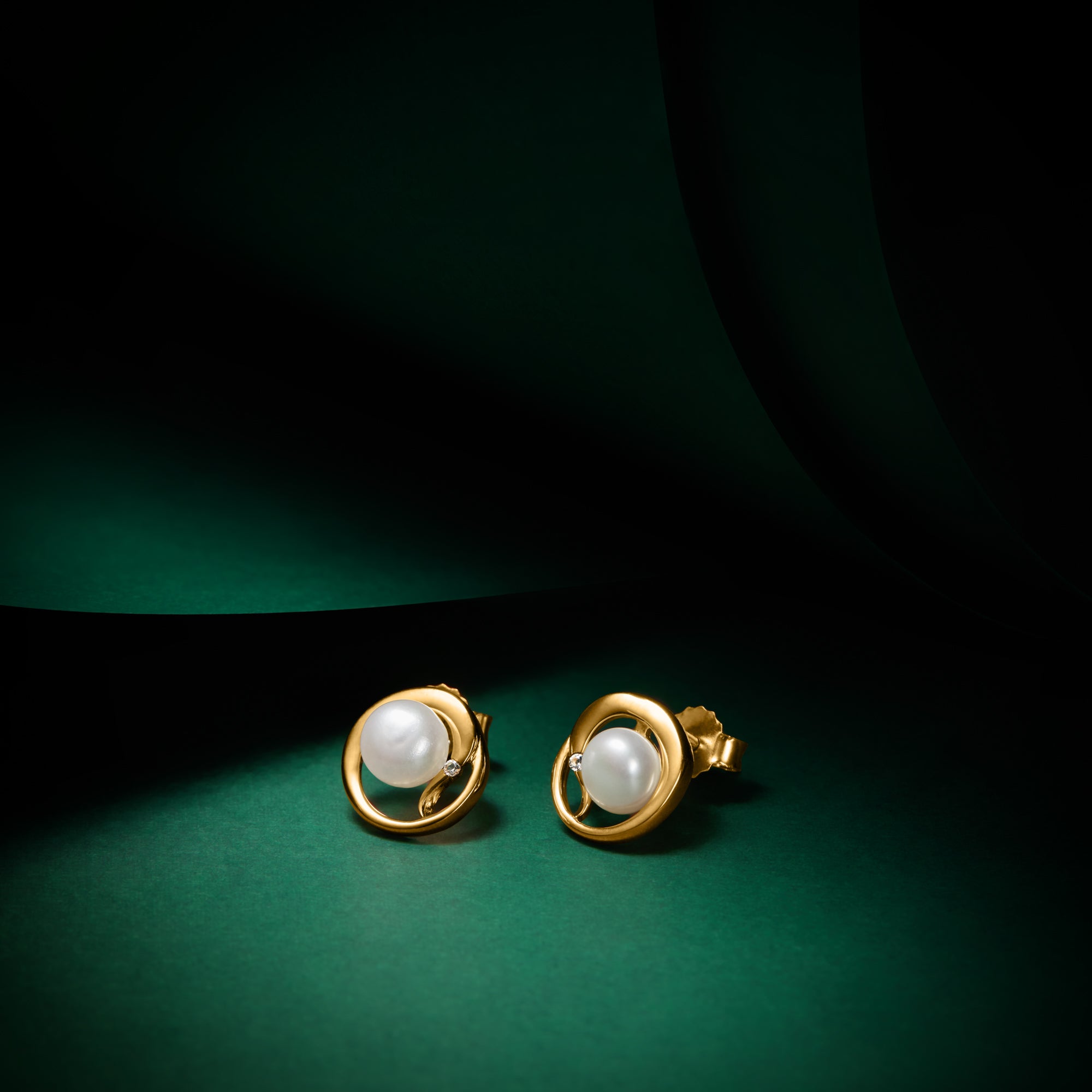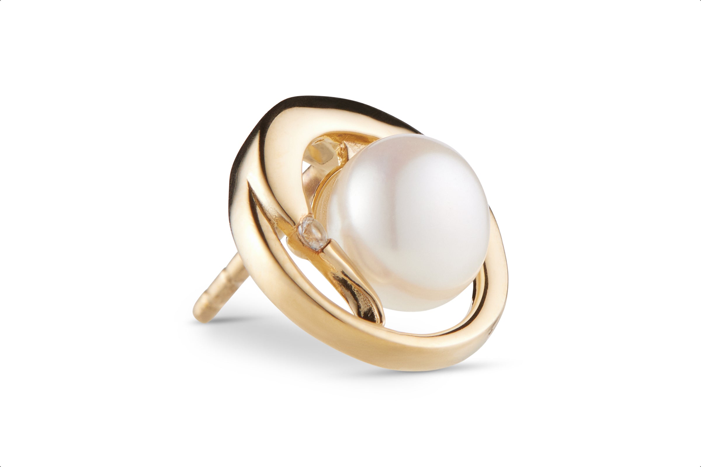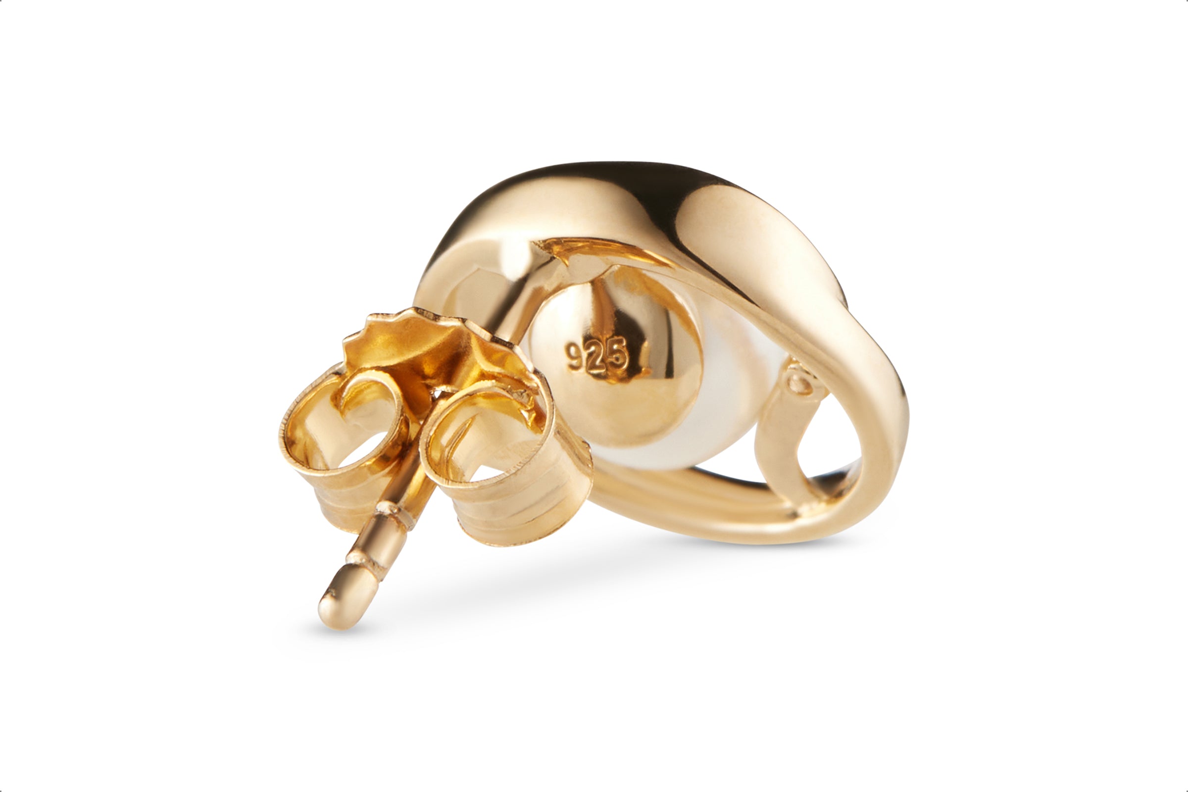 Understated yet striking, the Bianca earrings offer a fresh take on classic pearl studs with their soft curves and golden tones. A luminous freshwater pearl sits at the center of a fluid, circular setting, subtly accented by a single white topaz that adds just the right amount of shimmer. The sculptural silhouette brings a sense of quiet sophistication, perfect for those who appreciate refined, modern elegance.