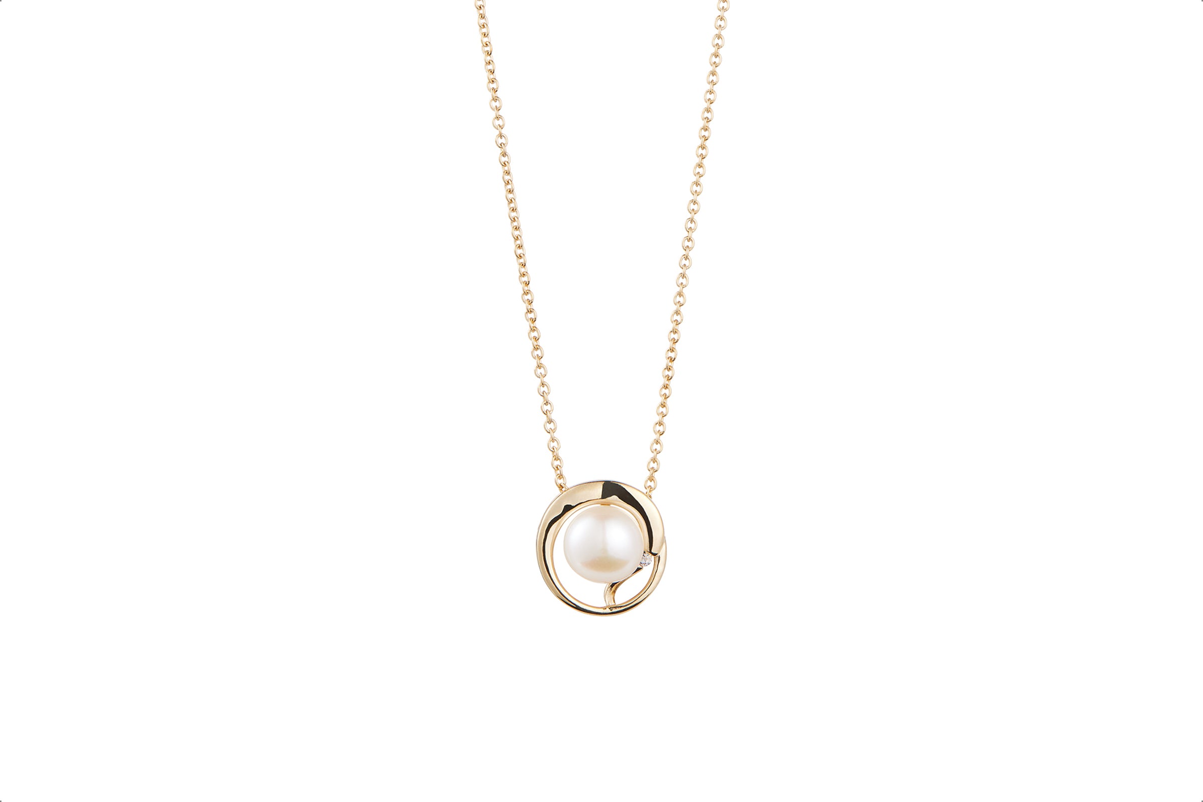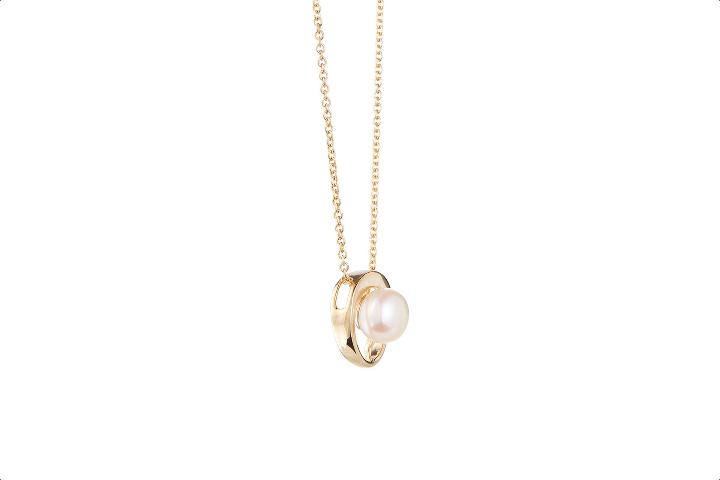 Effortlessly graceful, the Bianca pendant reimagines a classic form with a modern sensibility. At its heart lies a radiant freshwater pearl, framed by a gently looping gold-toned arc and finished with a single white topaz that catches the light with quiet brilliance. The design is fluid yet polished, refined without feeling overdone.